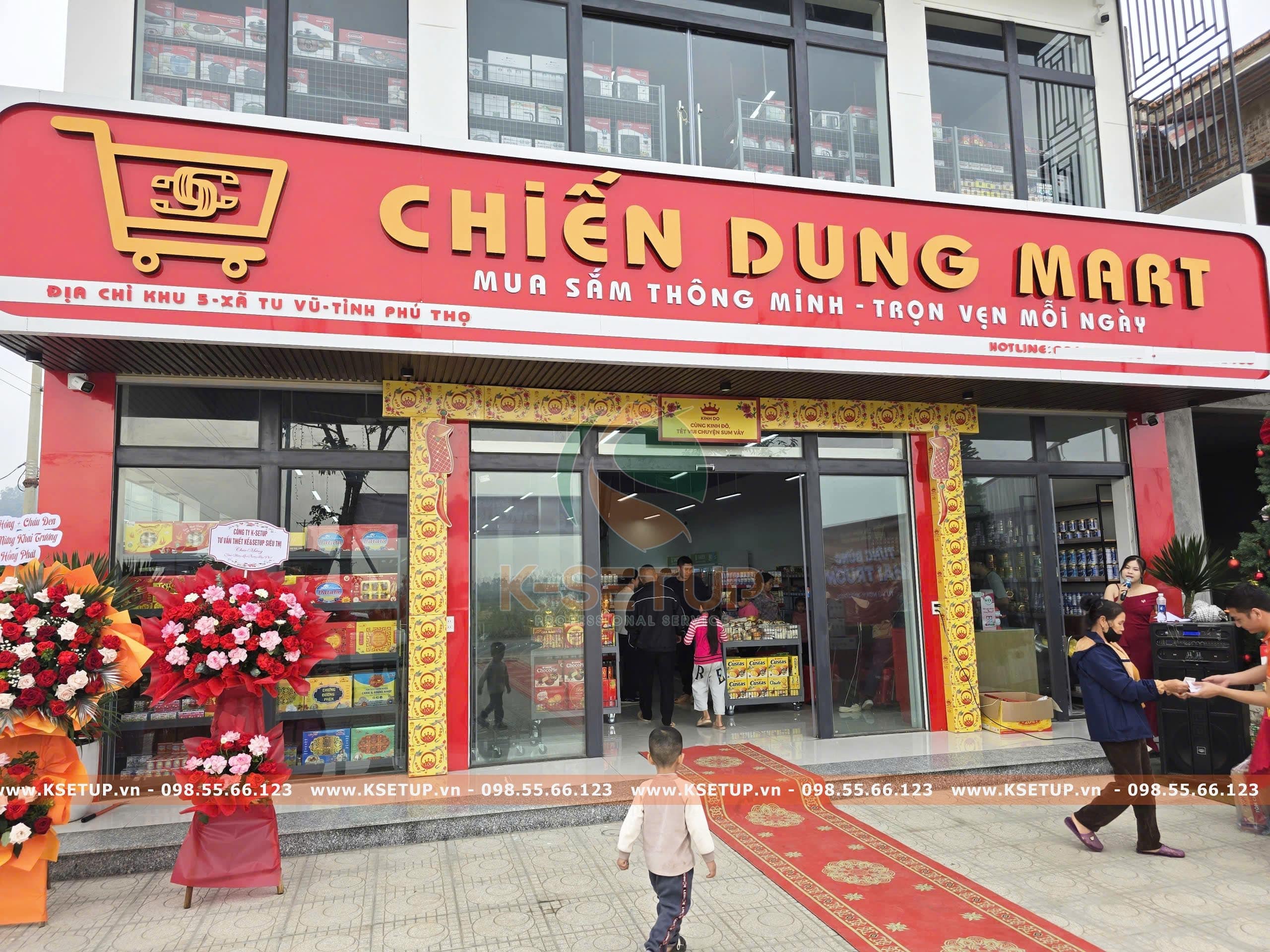 Tháng 12 năm 2025, đội ngũ chuyên gia thiết kế và setup siêu thị K-Setup đã xuất sắc hoàn thành dự án mở siêu thị Chiến Dung Mart tại Thanh Thủy – Phú Thọ. Sự xuất hiện của siêu thị Chiến Dung Mart được cho là một điểm sáng mới trong lĩnh vực kinh doanh bán lẻ tại khu vực. Một lần nữa, K-Setup xin gửi lời chúc mừng siêu thị Chiến Dung Mart đã có buổi lễ khai trương thành công rực rỡ.