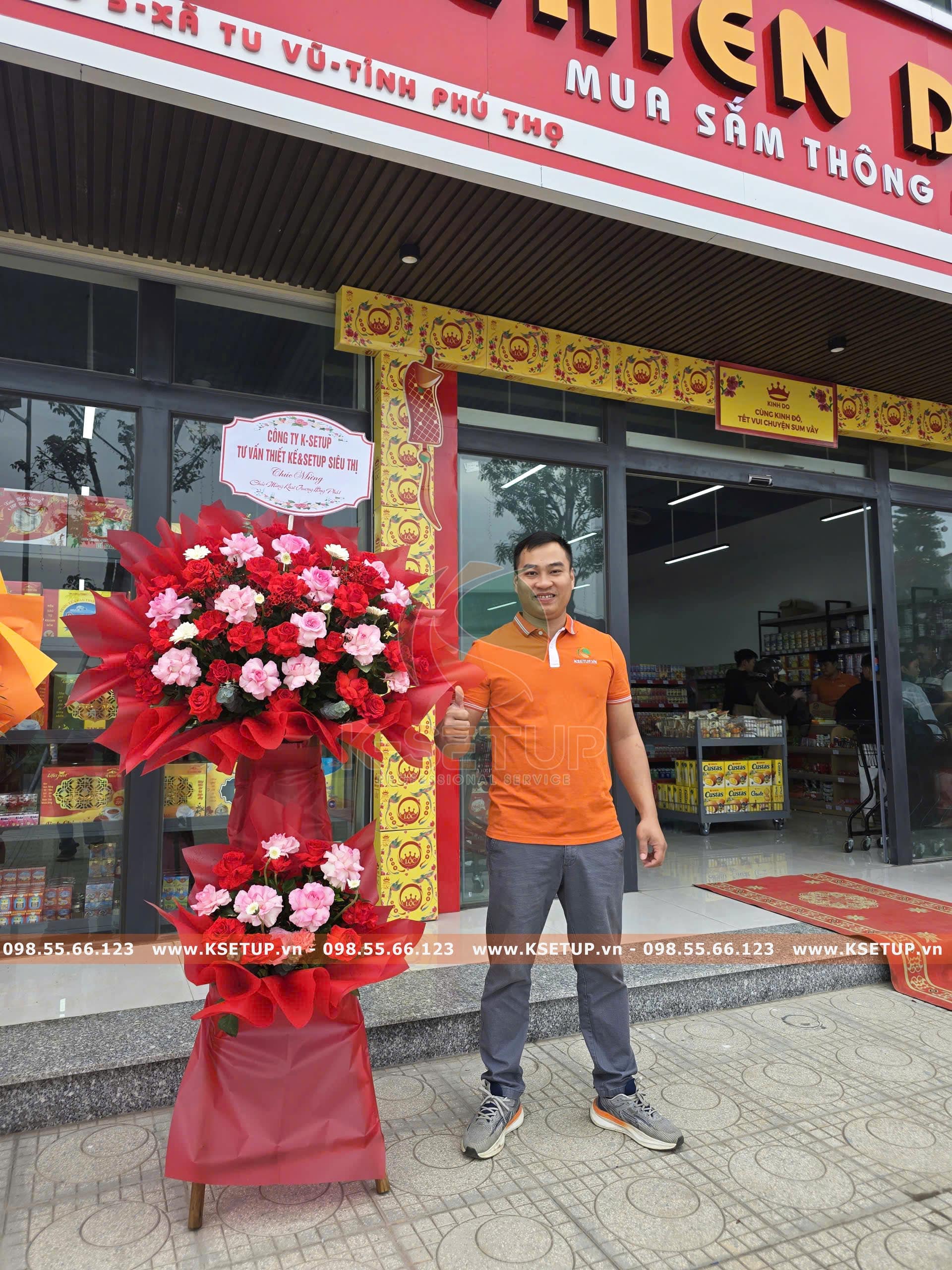 Nhân dịp siêu thị chính thức khai trương, K-SETUP trân trọng gửi tặng lẵng hoa tươi thắm tới Quý Chủ đầu tư như một lời chúc tốt đẹp, đồng thời bày tỏ lòng tri ân sâu sắc trước sự tin tưởng lựa chọn dịch vụ thiết kế – mở siêu thị của chúng tôi.