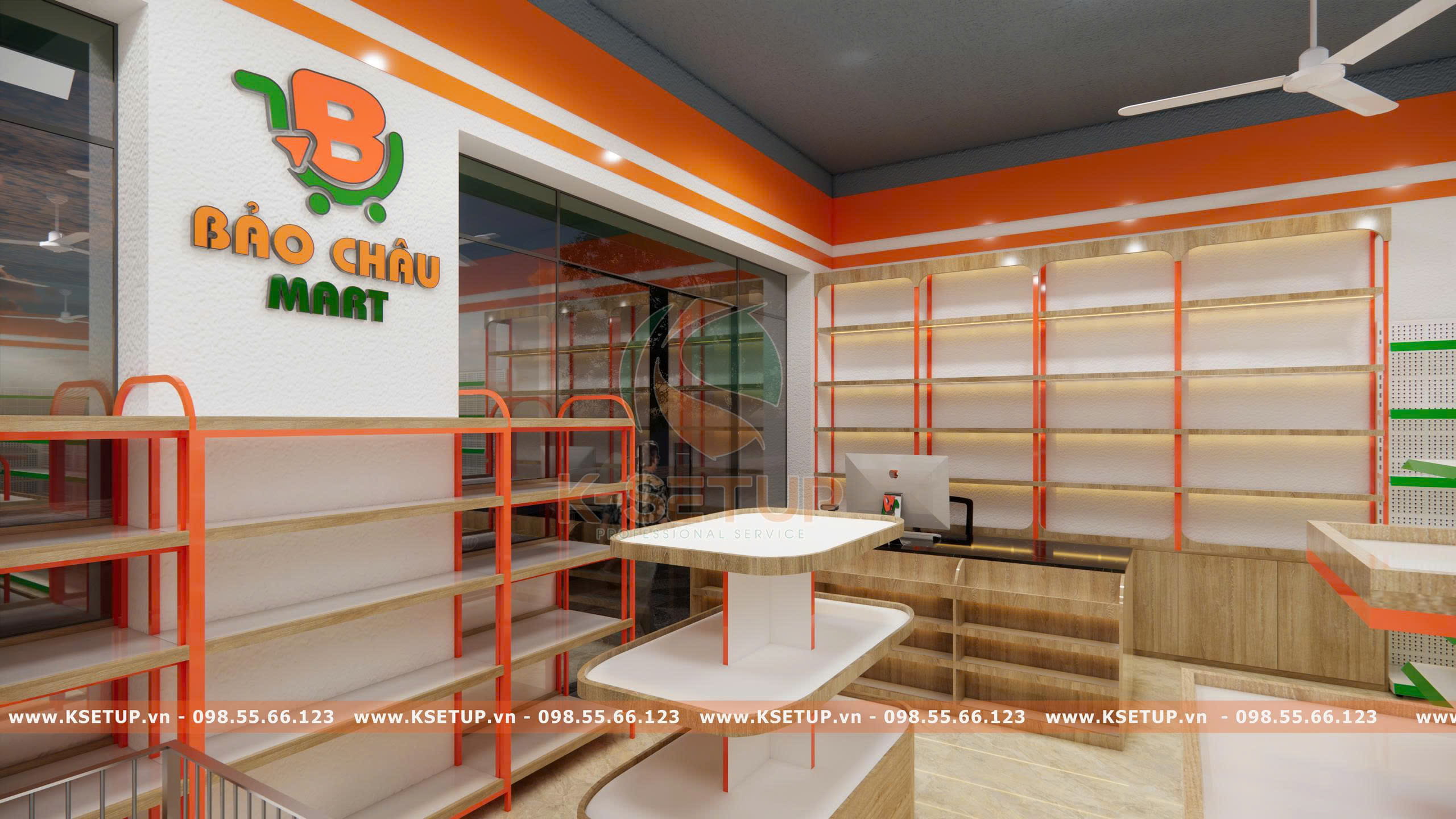 Dự án siêu thị Bảo Châu Mart được K-SETUP triển khai theo mô hình thiết kế – setup trọn gói từ A–Z, bao gồm toàn bộ các hạng mục từ tư vấn thi công mặt bằng, định hướng mô hình kinh doanh, thiết kế 3D siêu thị cho đến thi công hoàn thiện. Đội ngũ K-SETUP trực tiếp thực hiện lắp đặt hệ thống giá kệ, bố trí ngành hàng, setup trưng bày sản phẩm và sắp xếp hàng hóa theo tiêu chuẩn bán lẻ hiện đại. Nhờ quy trình đồng bộ và chuyên nghiệp, chủ đầu tư có thể tiết kiệm thời gian, tối ưu chi phí và sẵn sàng vận hành siêu thị ngay sau khi hoàn thiện. Đây chính là lợi thế của giải pháp setup siêu thị trọn gói mà K-SETUP đang triển khai trên toàn quốc.